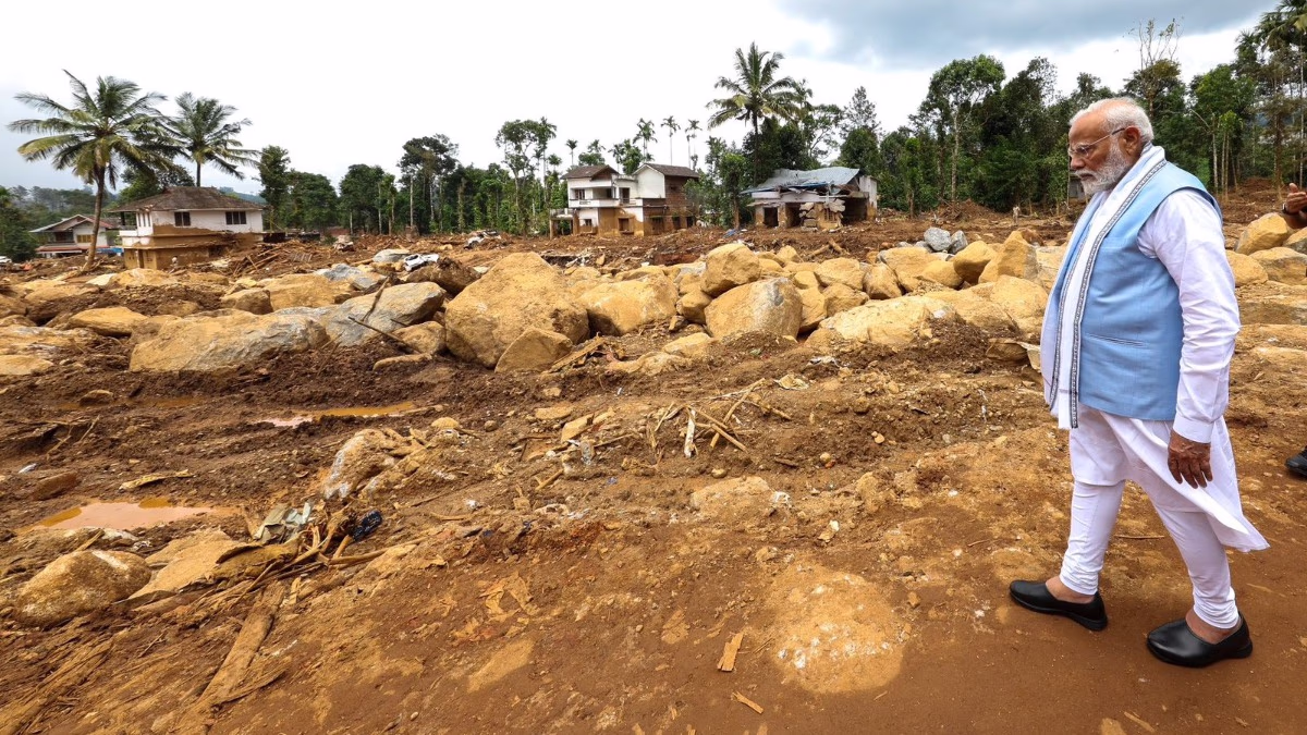 While examining the damage, the Prime Minister walked over the bridge. After reaching Churamal, Modi stepped out of his vehicle, talked to rescue workers, Kerala’s Chief Secretary V Venu, and district officials, and surveyed the rock and debris-strewn area on foot. Accompanying him were Kerala’s Governor Arif Mohammad Khan, Chief Minister Pinarayi Vijayan, and Central Minister Suresh Gopi.