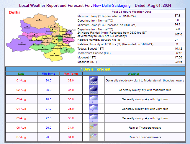 The weather department has issued a rain alert for several areas of Delhi-NCR. Moderate rain is expected today (Friday), August 2, in Delhi, Noida, and Ghaziabad. There is a likelihood of moderate to heavy rain in Delhi and its adjoining areas until August 2. However, the intensity of the rain may reduce afterward.