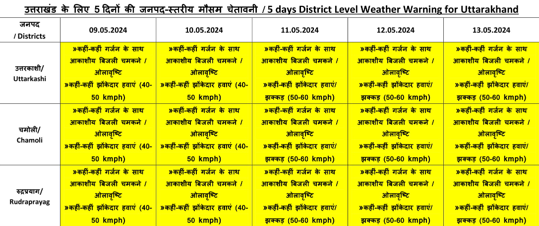 Meanwhile, Badrinath's doors will open on May 12th at 6 AM. However, the Weather Department has issued yellow alerts for multiple areas, forecasting light to moderate rainfall across regions such as Uttarkashi, Tehri, Pauri, Rudraprayag, Chamoli, Bageshwar, Pithoragarh, and Almora.