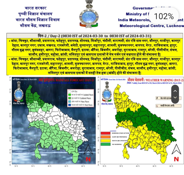 Uttar Pradesh is on the cusp of a climatic shift. Today, the 30th of March, and tomorrow, the 31st, the region is expecting stormy weather accompanied by rainfall in various areas. According to the weather department, districts including Western Uttar Pradesh, Bundelkhand, and Lucknow may experience thunderous winds, thunderstorms, and rain showers.
