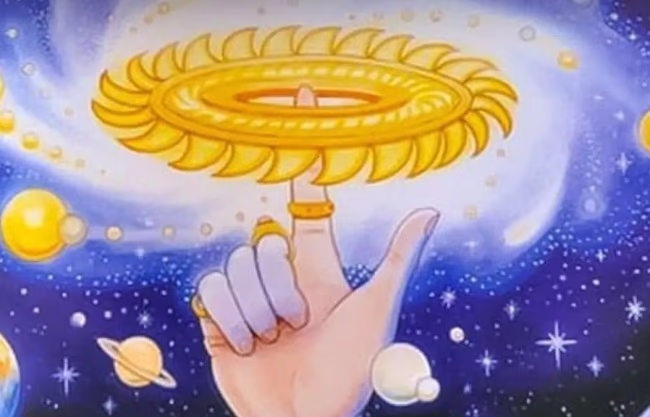 Scriptures describe the Sudarshan Chakra as a remarkable construct. It was circular with razor-sharp arrow-like edges. The Chakra boasted dual rotating rows of pointed spikes in opposite directions. Not thrown like ordinary weapons, it was directed towards foes with sheer willpower.