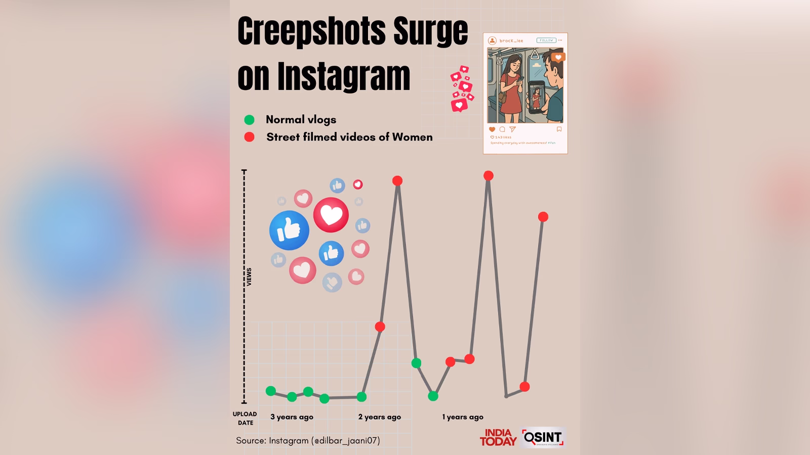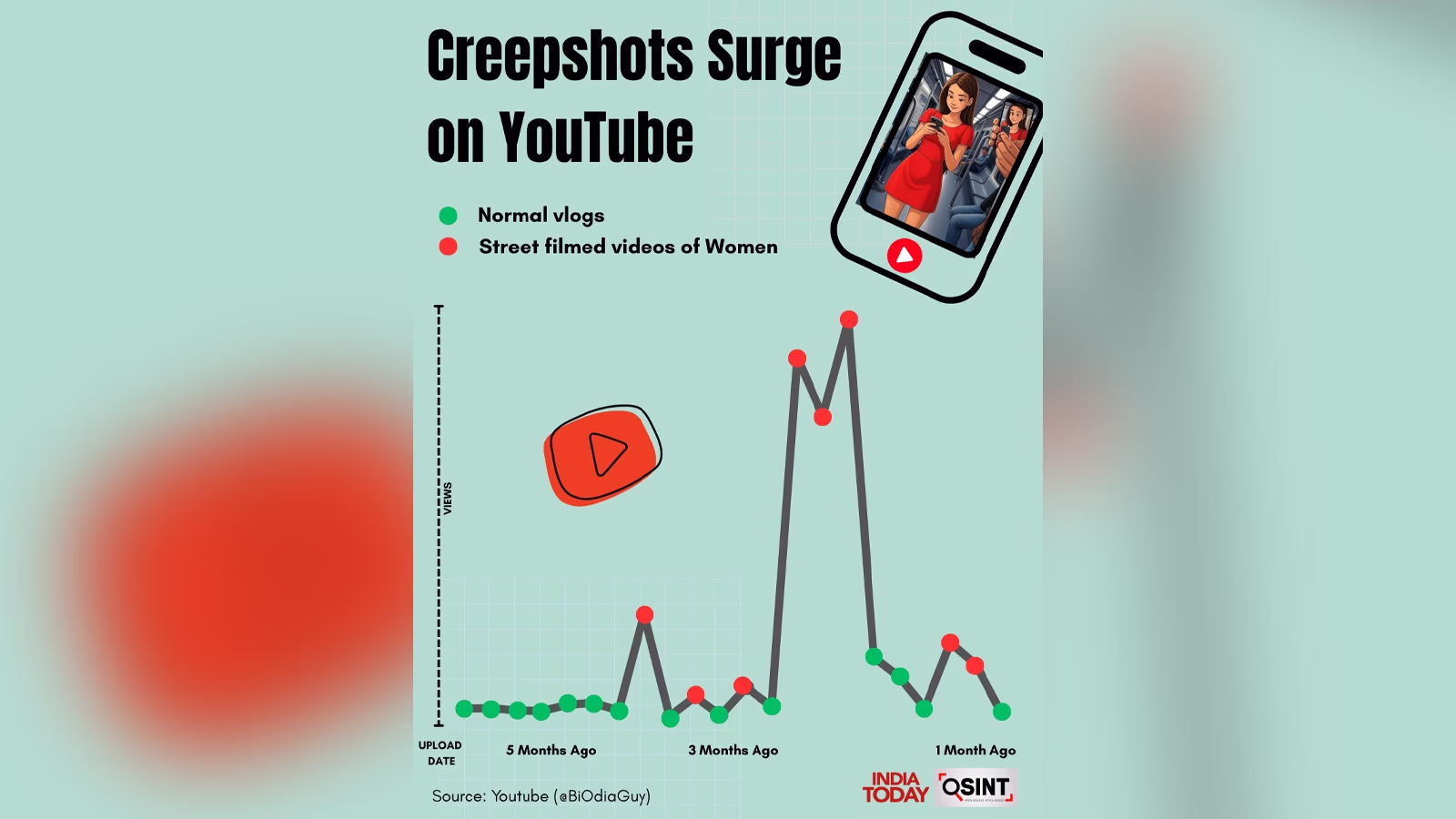 An account named Indianwalk uploaded a video of an unsuspecting student on Church Street. After going viral, the student began receiving lewd messages on social media. India Today's OSINT team discovered 23 other accounts on YouTube and Instagram where content creators, not getting enough views on regular content, resorted to secretly filming women.