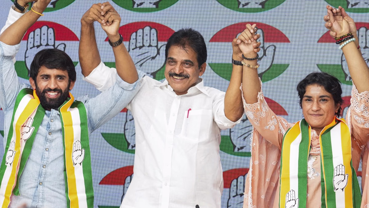Wrestler Vinesh Phogat has aligned with the Congress party just before the Haryana Assembly elections. According to sources, Vinesh Phogat will contest from the Julana Assembly seat, while Bajrang Punia will not be running in the upcoming election. The Congress election committee convened a meeting regarding the Haryana Assembly elections, finalizing candidates for 71 seats so far. Initially, there was speculation that Bajrang Punia might contest from Badli, as it is his hometown. However, it has now been confirmed that he will not be participating in the election, but will instead focus on campaigning.