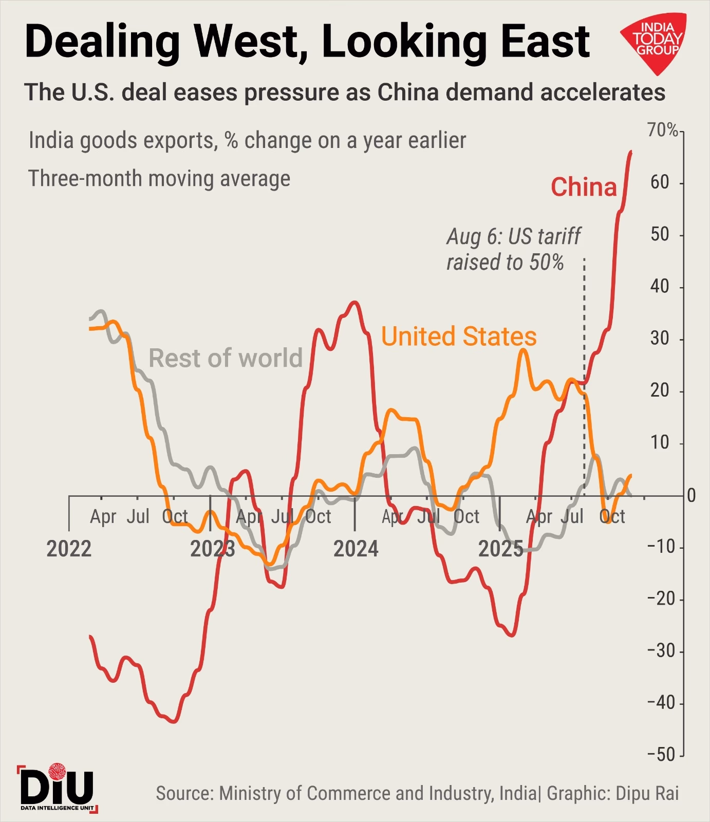 While seeking tariff relief from the U.S., India's exports to China have surged by nearly 70% in recent months, presenting contrasting trade narratives. The burgeoning economic ties with China present a geopolitical challenge for India, as it attempts to foster new alliances with the West without fully severing economic ties with its rival.