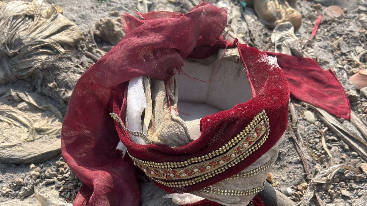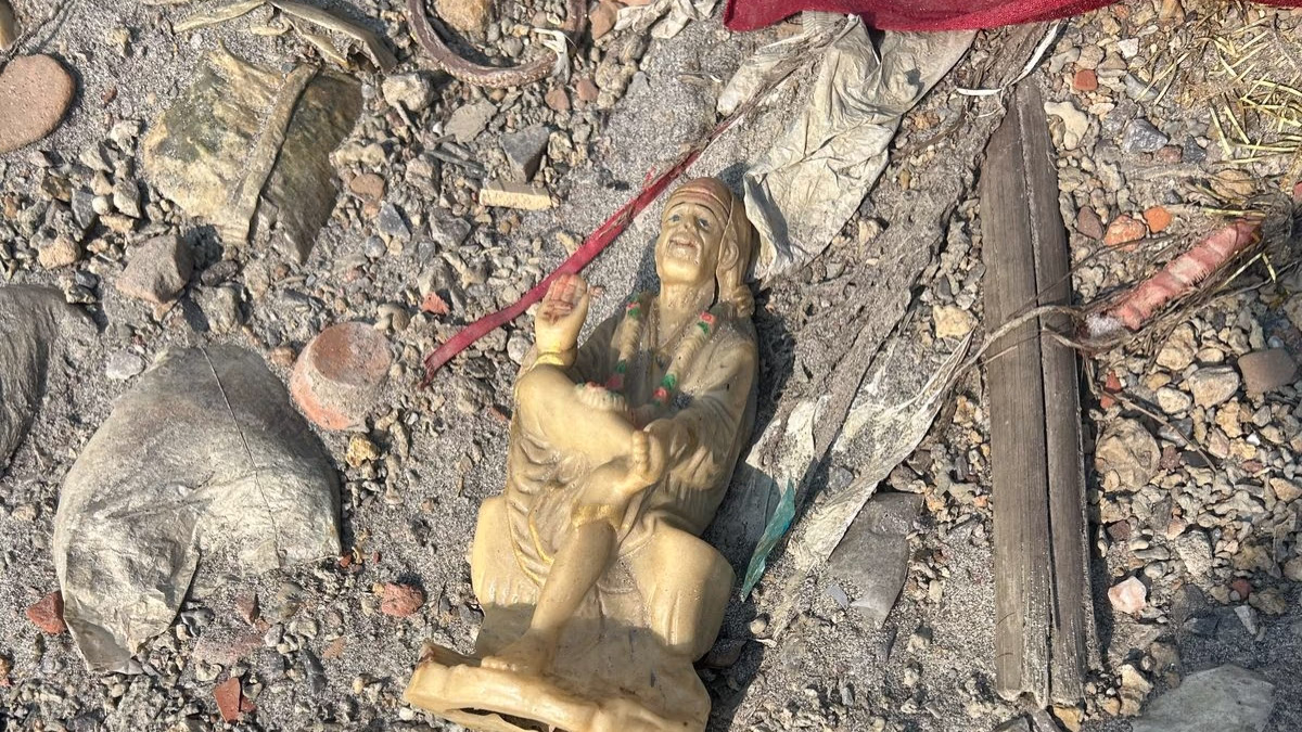 The video clearly shows idols of deities, havan materials, plastic bottles, heaps of garbage, and domestic waste being thrown into the river.