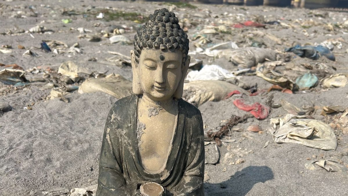 From wedding decorations to party flags, everything seems to have been dumped into the Yamuna!