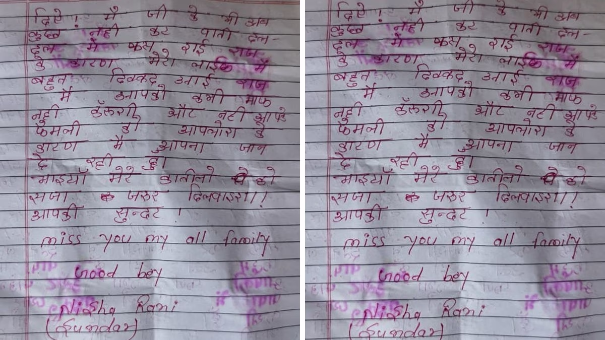 Afterwards, Raj Kumar also refused to marry Nisha. Devastated by this, Nisha hanged herself in the hotel room. A suicide note was found at the scene in which she wrote that her boyfriend Raj was solely responsible for her death, and she begged her brother and father for forgiveness. She had no other option and felt utterly disgraced. The boy and his family left her with no place to go.